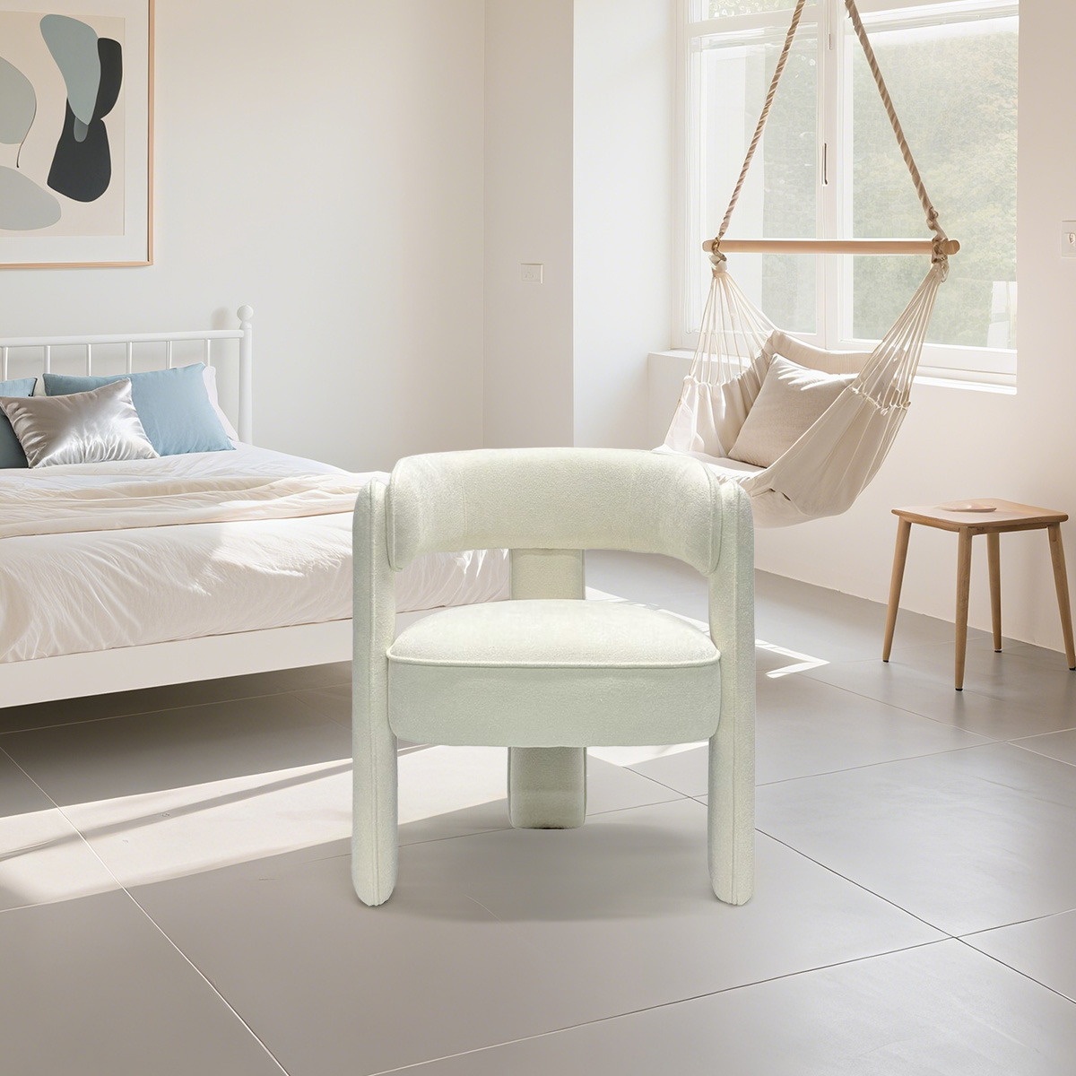 Açık Sırtlı Modern Beyaz Buklet Namlu Vurgulu Sandalye - Döşemeli Yemek ve Oturma Odası Koltuğu