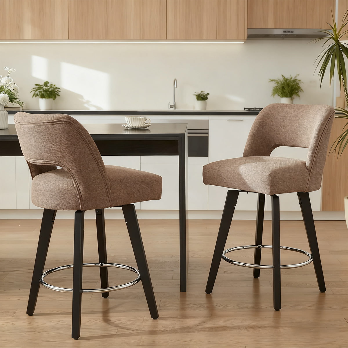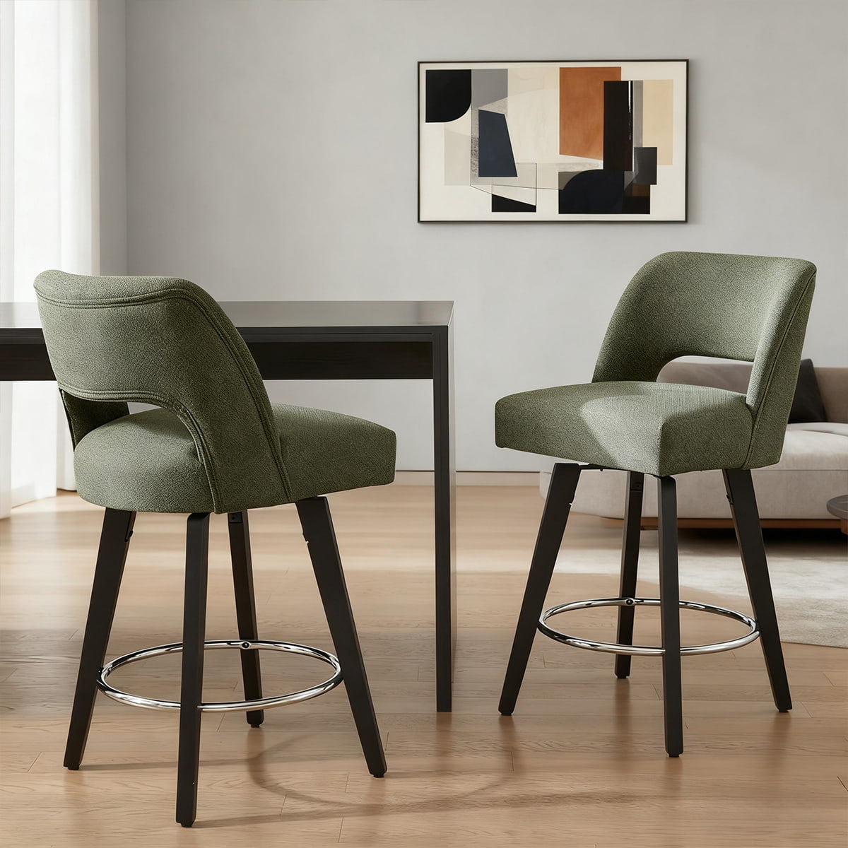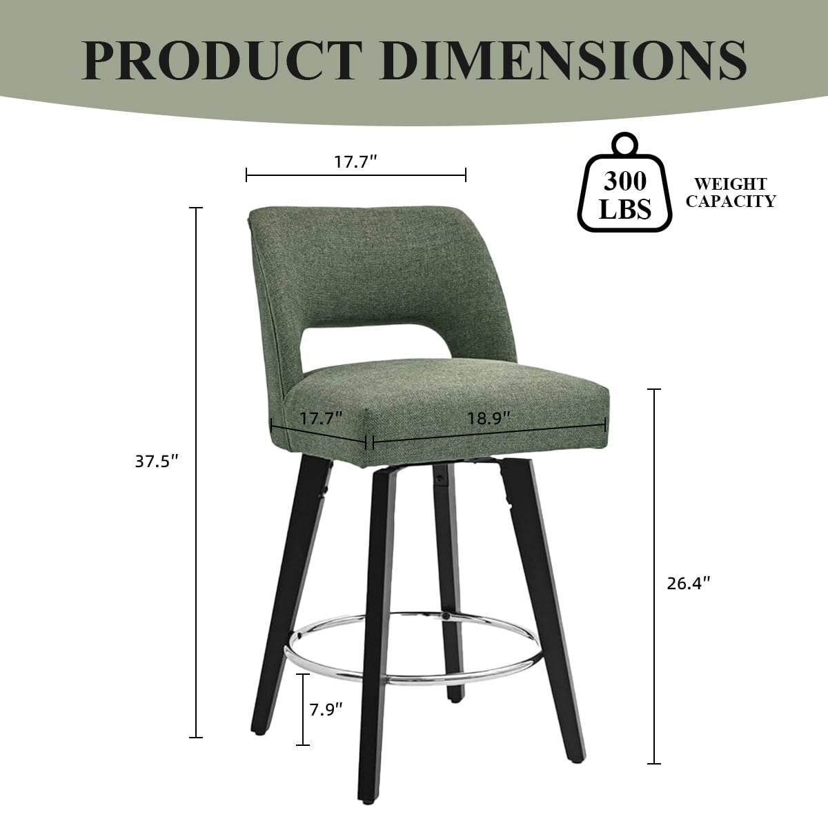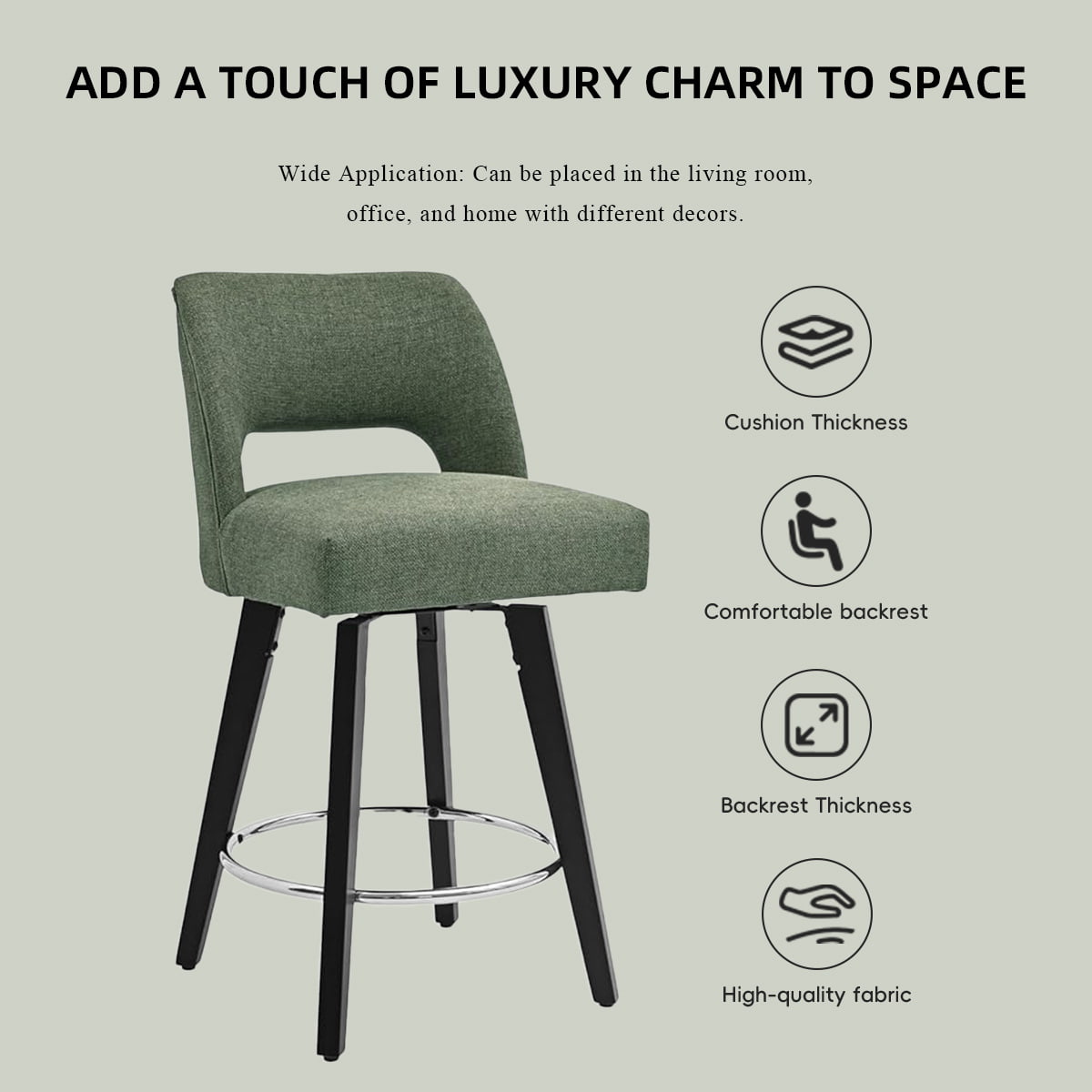 Modern Yeşil Döner Karşı Yükseklik Bar Taburesi, Arkalıklı ve Metal Ayaklı | Kitchen Island & Home Pub için Döşemeli Keten Bar Sandalyeleri