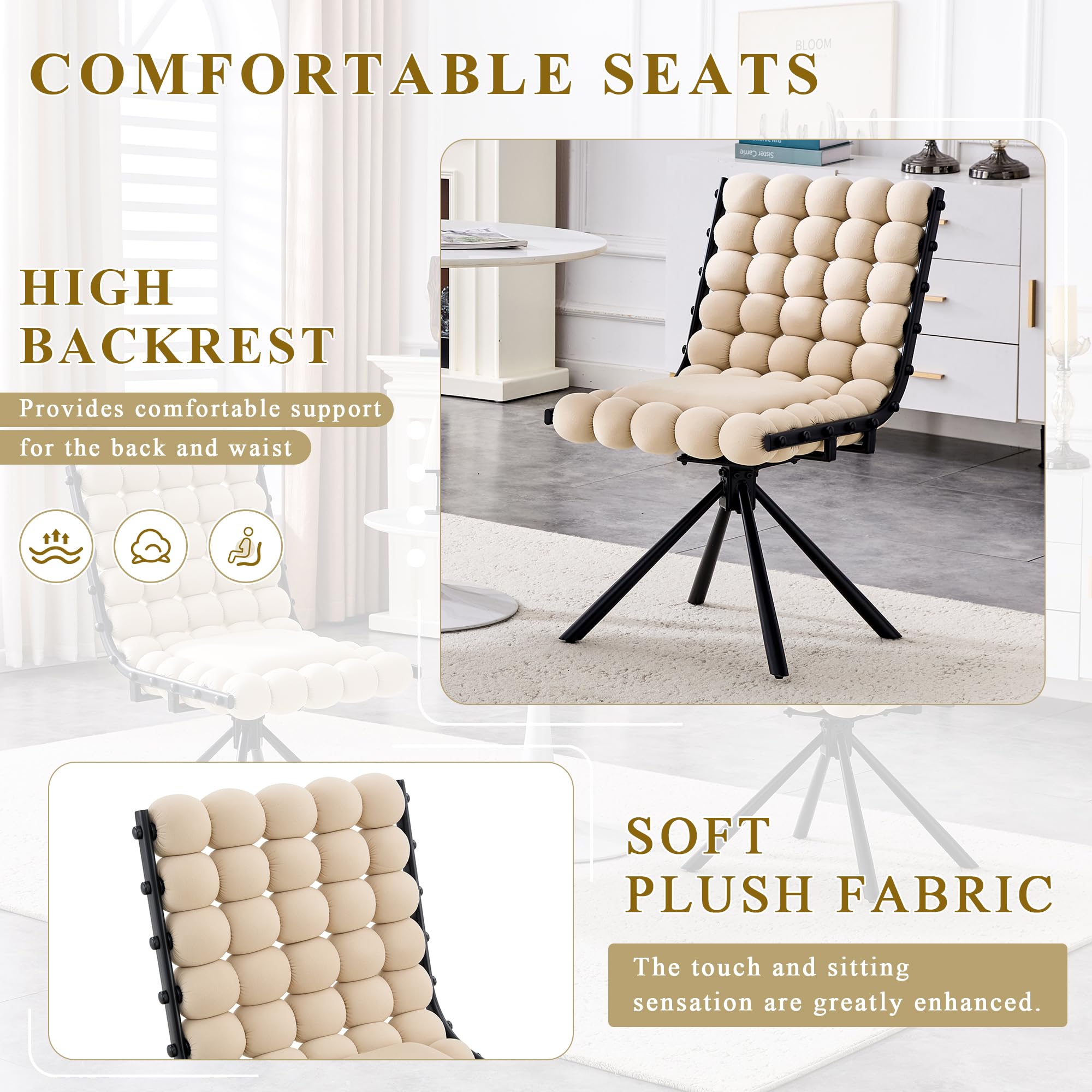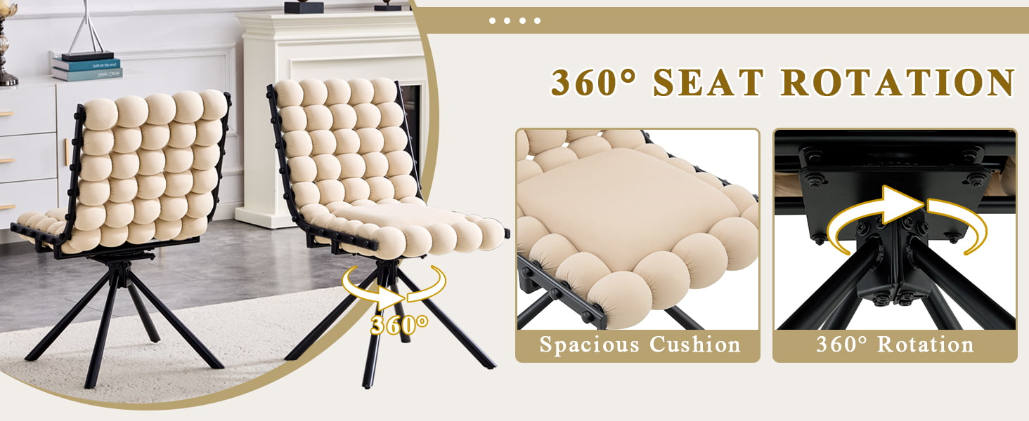 Kabarcık Minder Sırtlı Kadife Döner Yemek Sandalyesi, Metal Ayaklı Döşemeli Vurgulu Sandalye (Tekerleksiz)