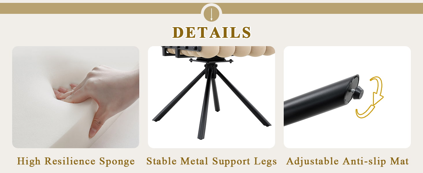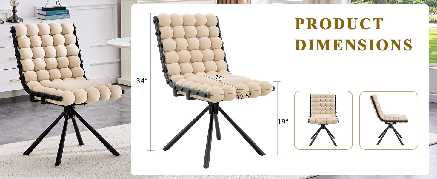 Bu kadife döner yemek sandalyesi, modern yemek alanları, yaşam tarzı iç mekanları ve butik ticari ortamlar için tasarlanmıştır. Heykelsi kabarcık yastıklı sırt dayanağı ve pürüzsüz Hollanda kadife döşemesine sahip sandalye, göz alıcı tasarımı günlük konforla birleştiriyor. 360 derece dönme işlevi esnek harekete izin verirken, sağlam metal ayaklar ve tekerleksiz taban yemek odaları, oturma odaları, makyaj alanları ve kafe oturma yerleri için güvenilir stabilite sağlar. Ergonomik kavisli sırtı ve yüksek dirençli sünger yastıklaması, vücut basıncını eşit şekilde dağıtmaya yardımcı olarak uzun süreli oturma sırasında rahat destek sunar.