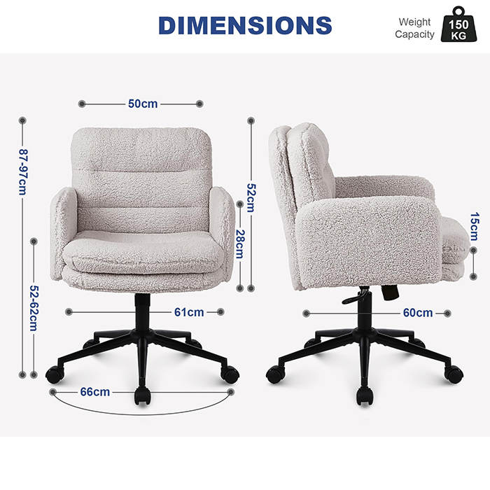 Bu sahte kaşmir ofis koltuğu konfor, estetik ve güvenilir üretim kalitesi arasında bir denge arayan alıcılar için tasarlanmıştır. Yumuşak, cilt dostu suni kaşmir kumaşla kaplanan sandalye, çökmeden uzun süreli destek sağlayan kalınlaştırılmış 15 cm'lik yüksek yoğunluklu bir yastığa sahiptir ve bu da onu uzun süreli çalışma, ders çalışma veya makyaj kullanımı için ideal kılar. Ergonomik koltuk yapısı, yumuşak 360 derece dönme hareketi, yükseklik ayarı ve hafif sallanma işleviyle bir araya gelerek günlük oturma konforunu artırırken ev ofisleri, yatak odaları ve yaşam tarzı odaklı iç mekanlara uygun temiz, modern bir görünüm sağlar.