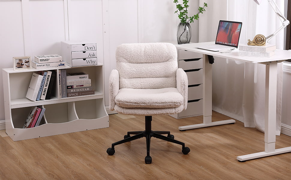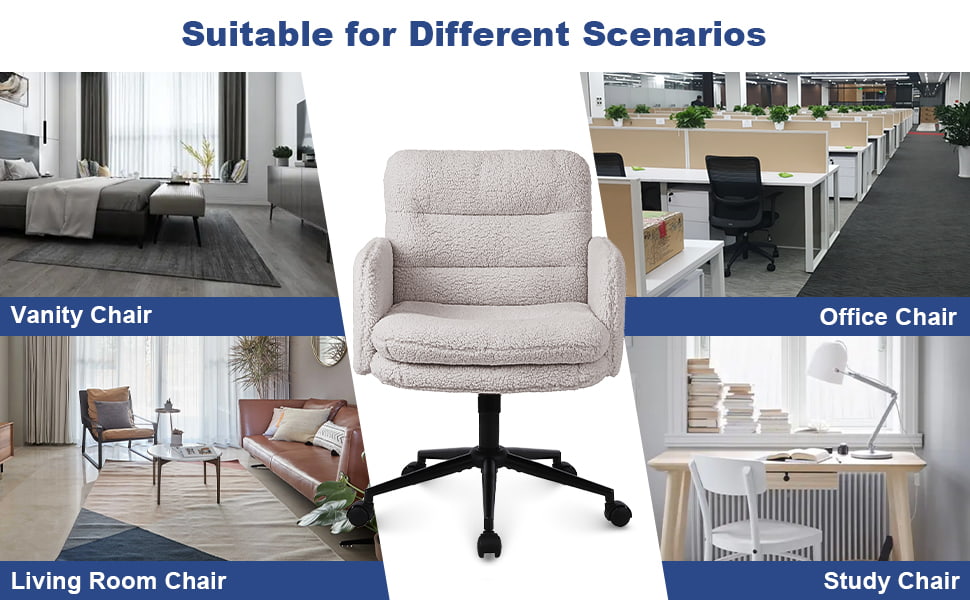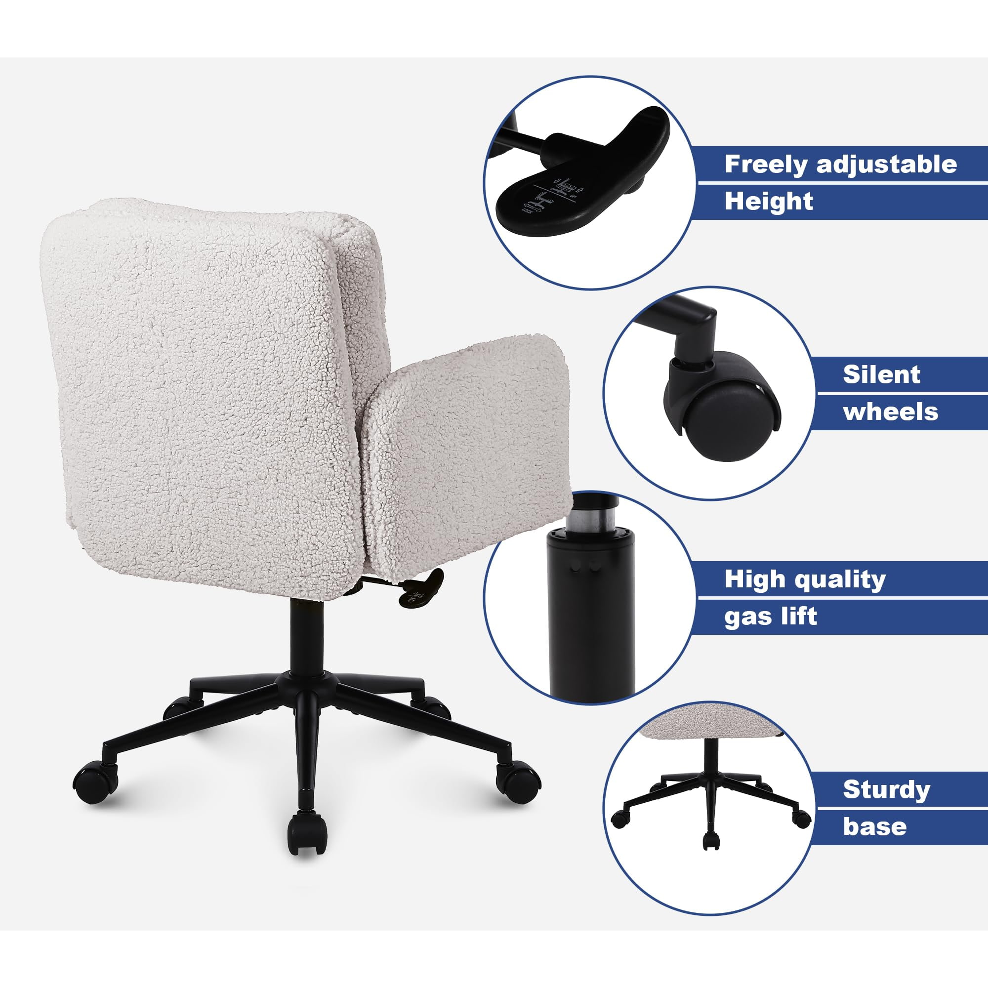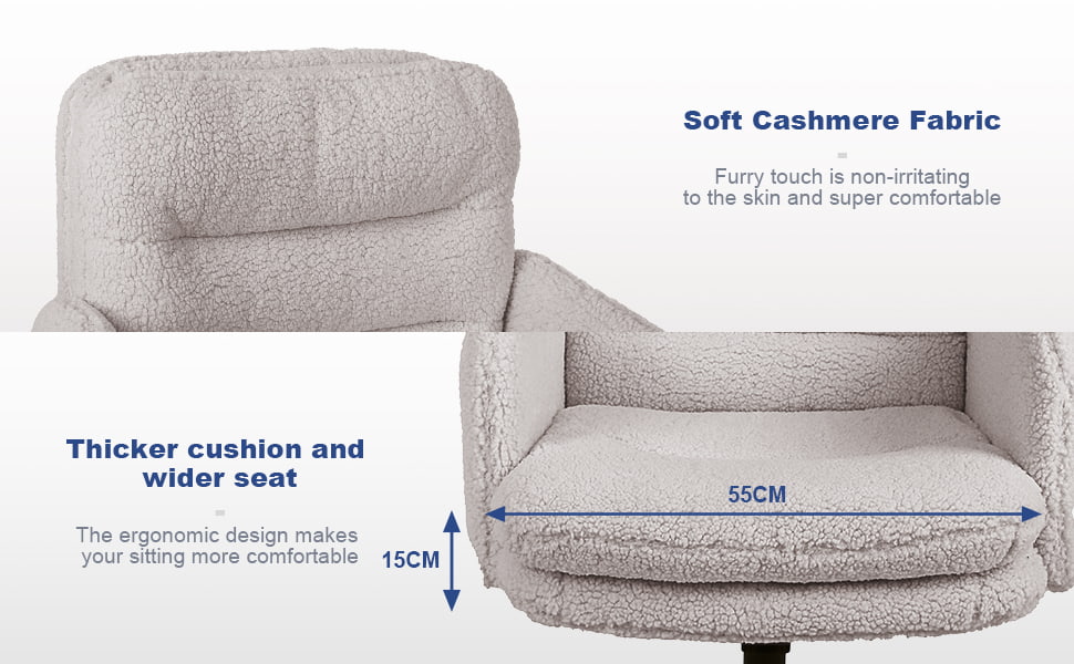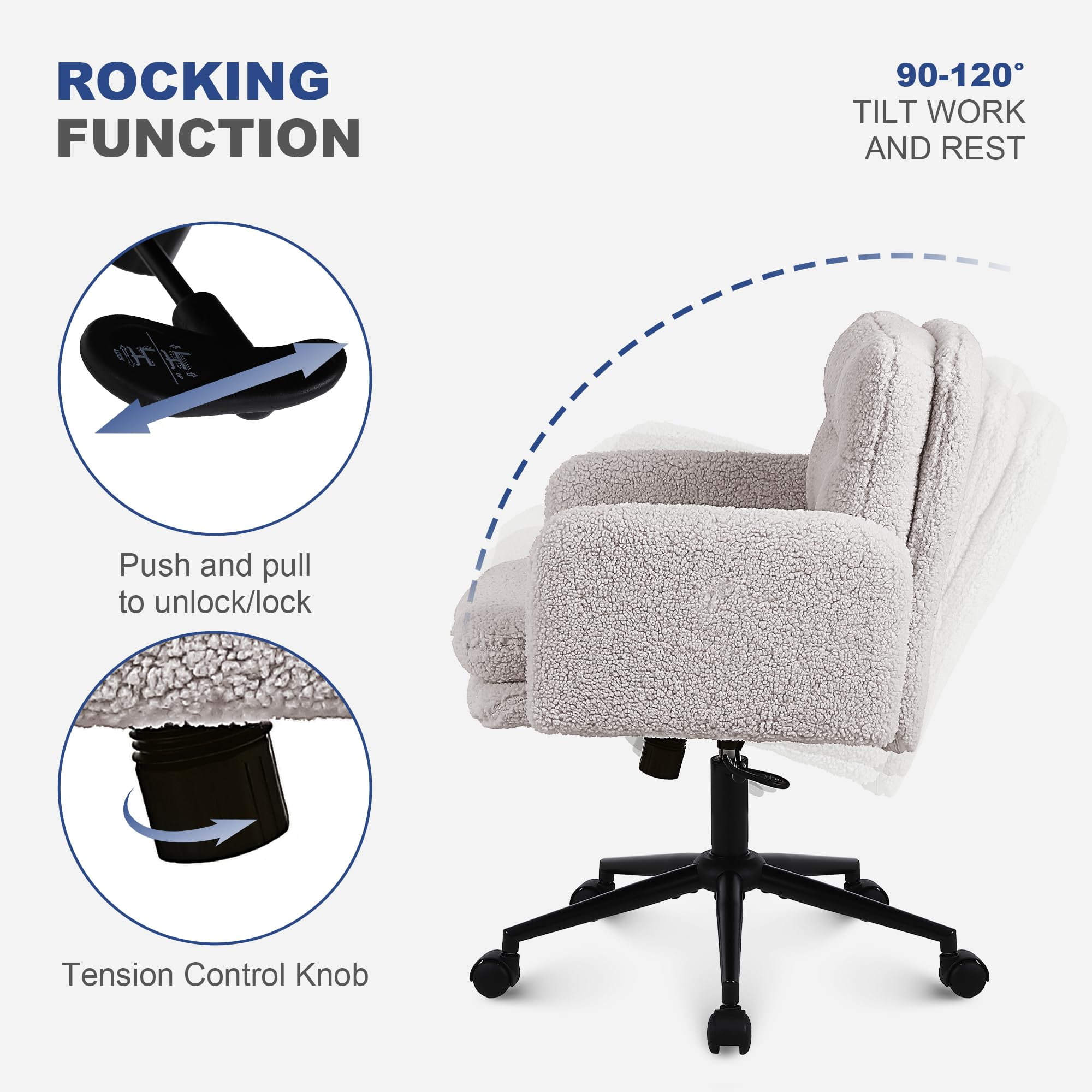 Döndürme ve Sallanma Fonksiyonlu Sahte Kaşmir Ayarlanabilir Ofis Koltuğu - Ev ve Vanity Kullanımı için Yumuşak Döşemeli Masa Sandalyesi