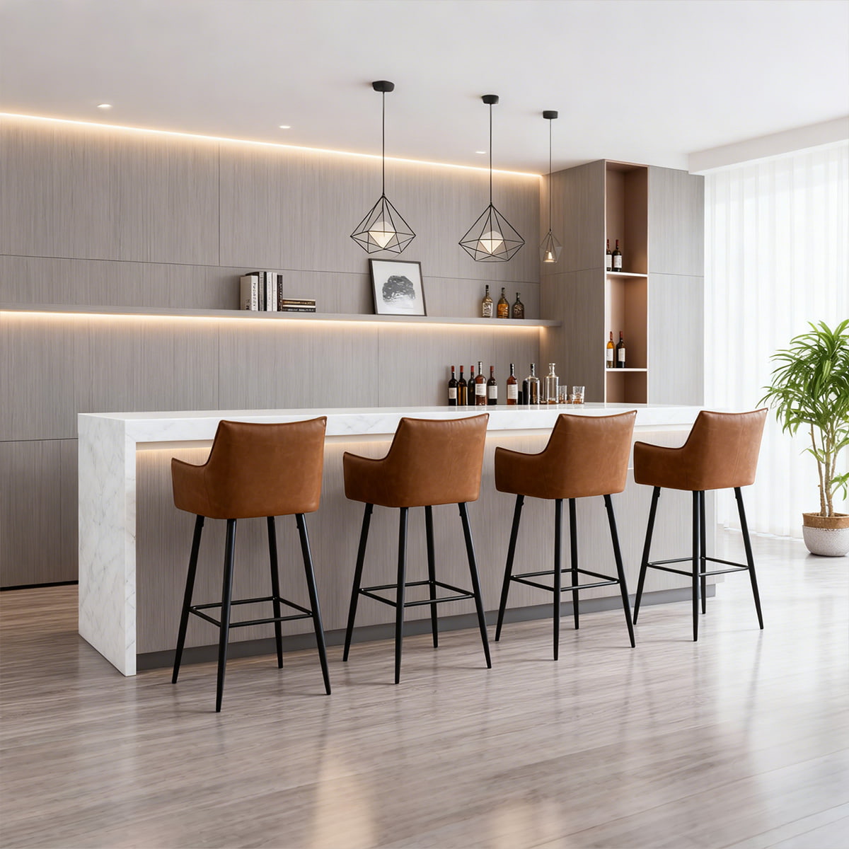 Minimalist silueti ve mat siyah ayakları, mutfak adalarından lüks barlara kadar hem konut hem de ticari iç mekanları tamamlıyor. Sağlam bir metal taban ve kaymayı önleyici pedlerle her tabure, 300 lbs ağırlık kapasitesiyle güvenli bir oturma deneyimi sunar. İster modern evler, butik restoranlar veya bar tezgahları için olsun, bu tabure her ortama eskimeyen bir incelik katıyor.